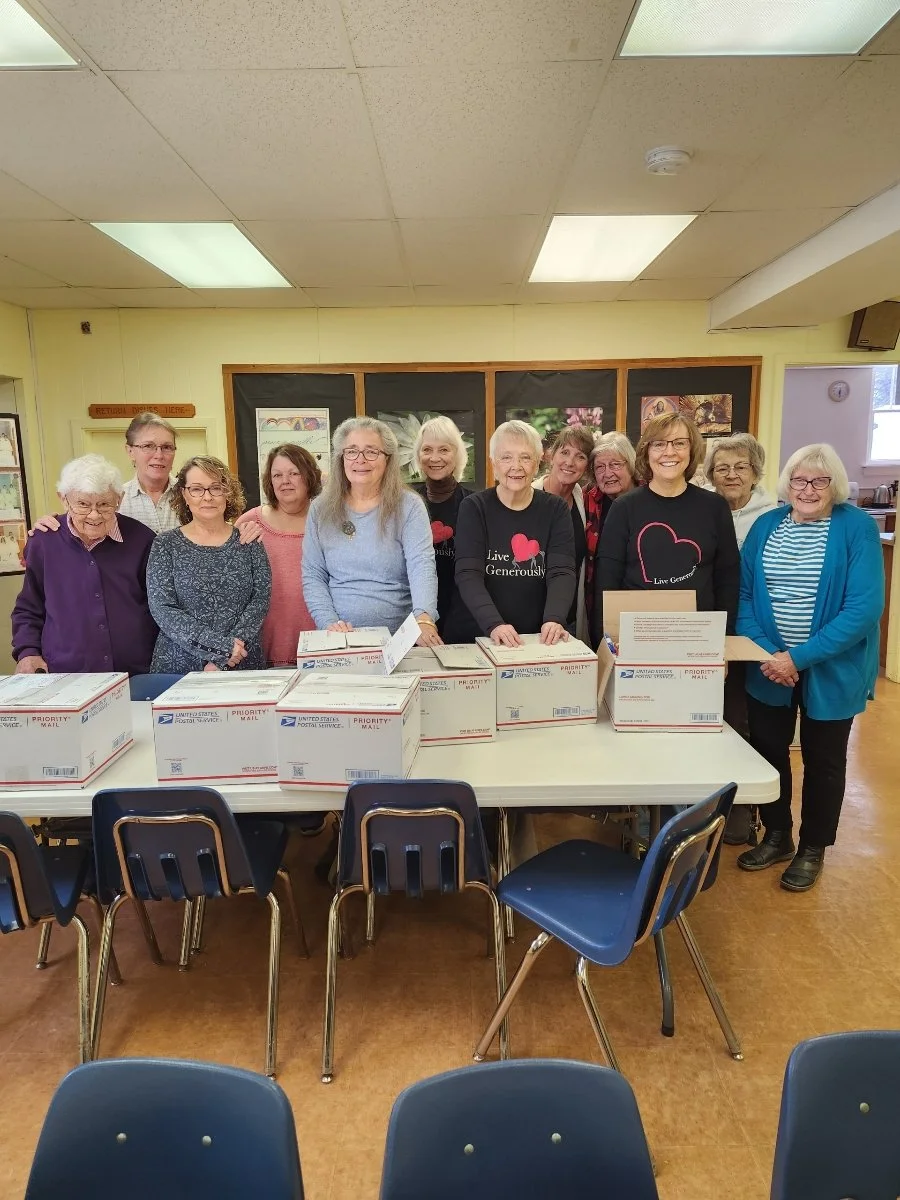 Members recently packed 12 boxes for Grace and Emmanuel college students and one military member. They were packed to the top and sent on Monday Feb. 6th. Thanks to all members who contributed goodies and to those who were there to sort and pack the boxes.
